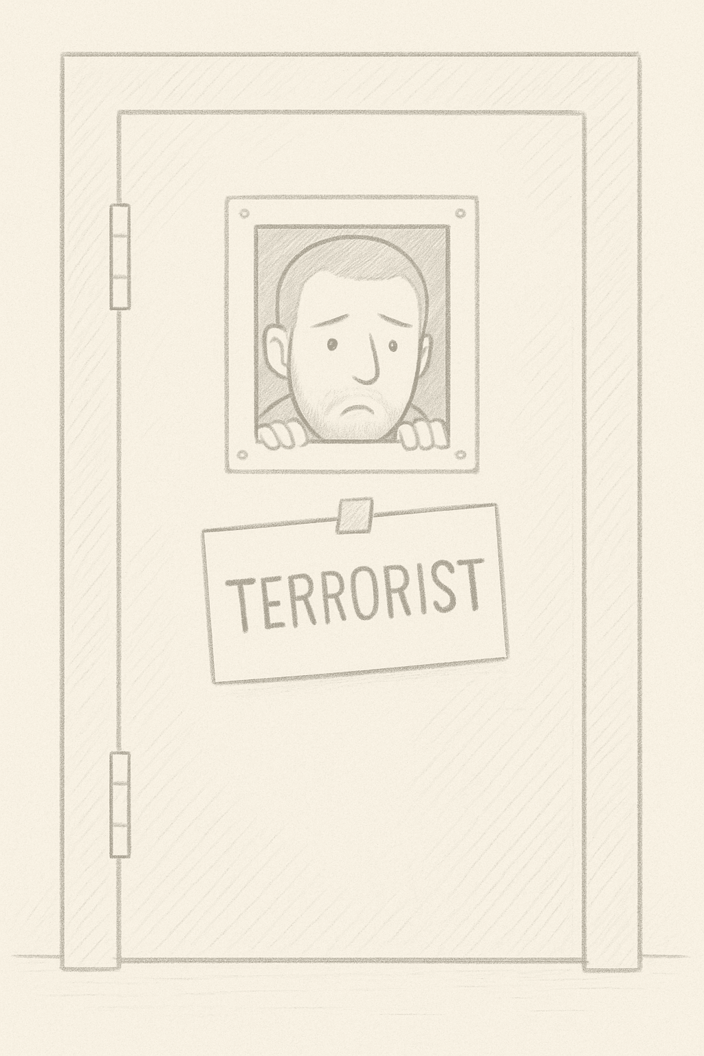 Ахмед неоднократно просил вывести его на прогулку хотя бы на короткое время, однако получал один и тот же ответ: «Прогулки — не для таких, как вы». Во время кратковременного вывода в коридор он заметил на двери своей камеры лист бумаги с надписью «Террорист». По его словам, в момент прибытия в изолятор этой таблички не было. Ахмед считает, что ее прикрепили позже, чтобы обозначить его статус для сотрудников.