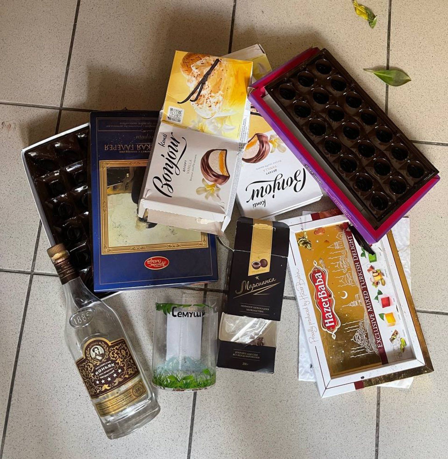 • бутылки с водкой, коньяк и конфеты — ими силовики угостились во время обыска в офисе в Малом Каретном переулке.