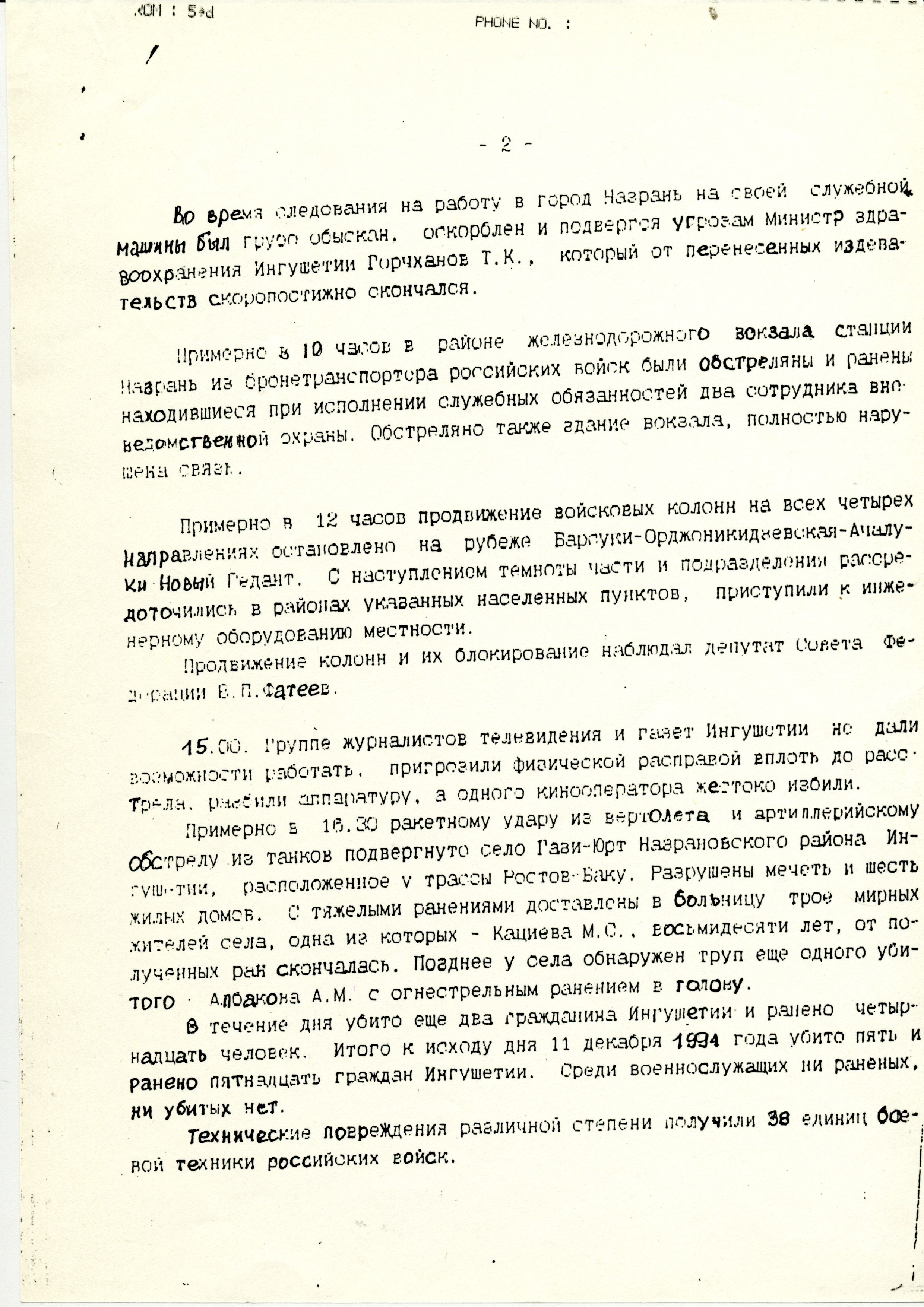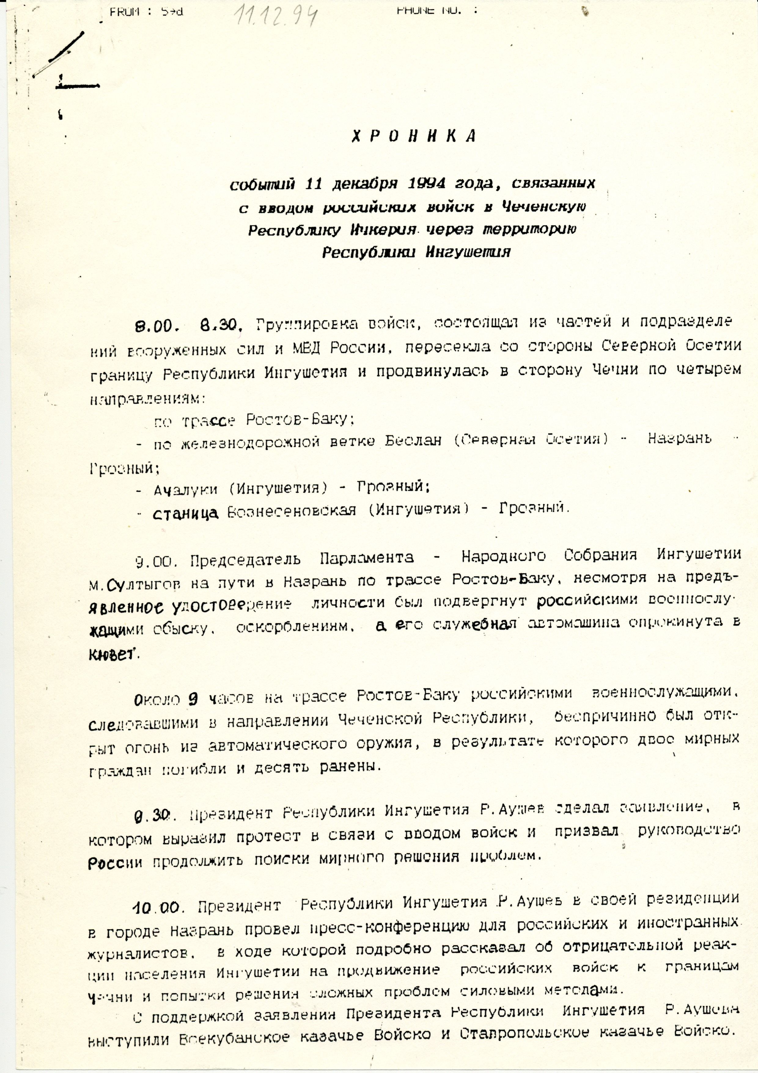 Хроника ввода российских войск в Чечню через Ингушетию, 1994 год (нажмите, чтобы увеличить)