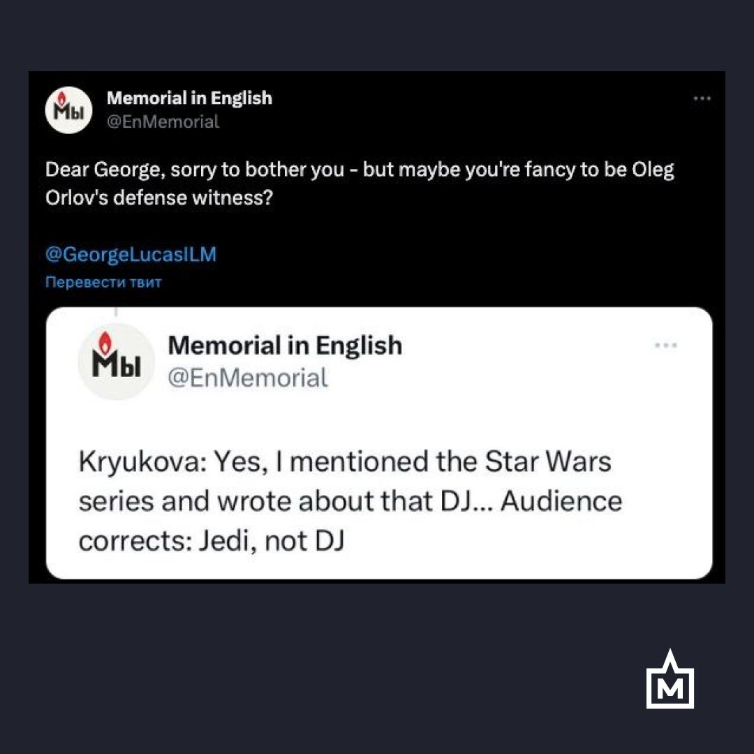 На прошедшем 3 июля заседании по делу Олега Орлова эксперт обвинения Наталия Крюкова пыталась объяснить, что она имела в виду в своей экспертизе, упоминая «Звёздные войны».